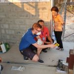Der Verbrennungsofen steht! Mittags werden die restlichen Arbeitsschritte erledigt (Griffe, Sandaufüllung, etc.). Für 16:00 Uhr ist die erste Testverbrennung angesetzt. Papier und Plastikmüll werden angeliefert. Wir erklären zunächst die Sicherheitsausrüstung (Handschuhe, Schutzbrille und Atemmaske), gehen dann Schritt für Schritt durch die ausgehängte, zweisprachige Bedienungsanleitung und führen einen kompletten Verbrennungsvorgang vor. Nach etwa zehn Minuten erreichen wir eine Betriebstemperatur von 850 °C. Wir fragen unseren Fahrer Prasert, was die Anwesenden Beamten reden und von der Anlage halten. Er meint, sie sind begeistert. Validieren kann man diese Aussage nicht, da ehrliches Feedback nicht praktiziert wird. Für morgen ist ein Treffen mit der Krankenhausleitung, unserem Projekt-Vorortvermittler sowie Verwaltungsbeamten des Ortes Ban Maet und der Gesundheitsbehörde angesetzt. Es sollen die zukünftige Nutzungsstrategie sowie Fragen aller Beteiligten geklärt werden.
