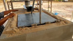 Verteilung von Sand zum Abdichten gegen Rauchaustritt