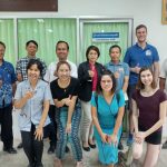 Von links: Peter (Vortort-Projektvermittler), Prasert (Fahrer), Herr Dontree (Bürgermeister des Ortes Ban Maet), Dr. Tanong (Chef des Krankenhauses Buntharik)