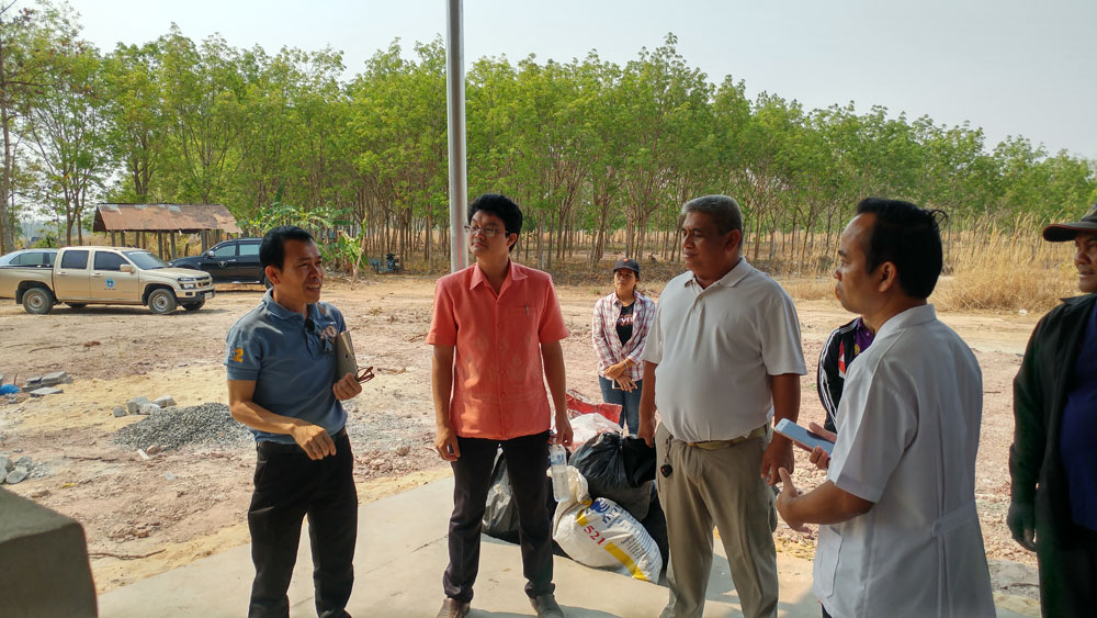 Von links Peter Vortort-Projektvermittler, Prasert Fahrer, Herr Dontree Bürgermeister Ban Maet, Dr Tanong Chef Krankenhaus Buntharik