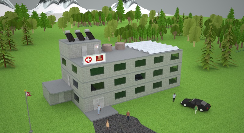 Am Ende entsteht ein Gesundheitszentrum mit zwei Arztpraxen im Erdgeschoss welche von einem nepalesischen und einem westlichen Arzt betrieben werden.